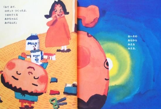 おへその穴から見えるのは、お兄ちゃん、お姉ちゃん、お父さん。