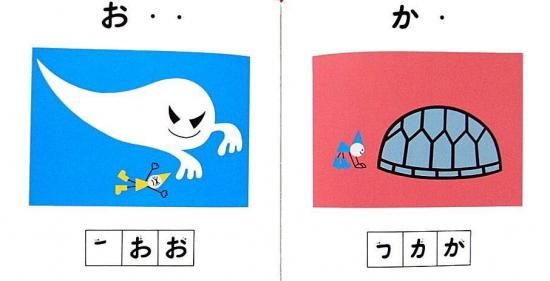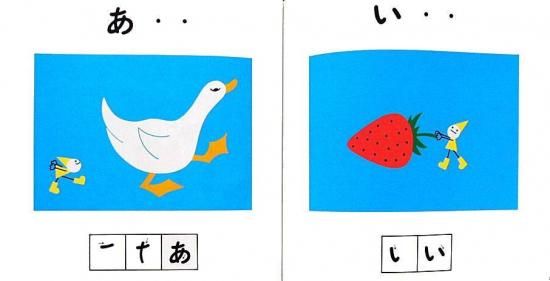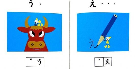 あいうえお順に楽しいイラストと書き順が描かれた「あいうえおのほん」。初出は1972年ですが、かわいらしくデザインされたイラストは、いま見てもかわいいですね。