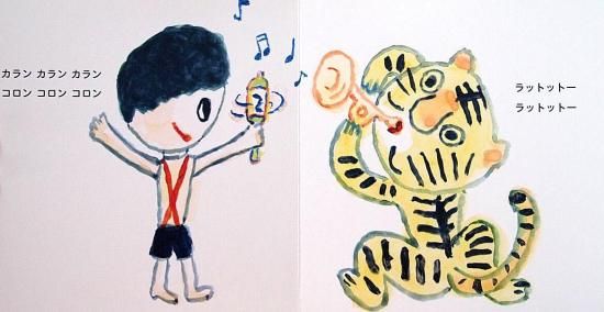 するとタヌキやトラやカンガルーなどが楽器を持って次々と登場します。