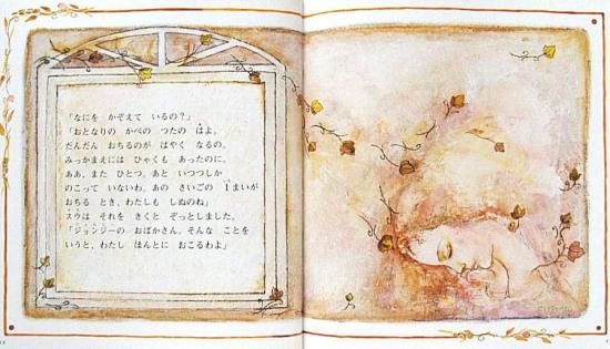 「最後の一葉」は、オー・ヘンリーの代表作のひとつだが、画家志望の二人の娘と落胆した老絵師との心のまじわりがかもし出すほのぼのとした情感と、しっとりした哀愁は、この作者の真髄を遺憾なくなく示したものといえるだろう。本書紹介文より。言葉にならない哀愁を牧野鈴子の挿絵が表現している、大人絵本です。