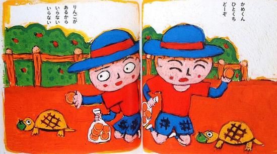 男の子が、やってきた猫やうさぎやカメにクッキーをすすめますが、ことごとく断られてしまいます。