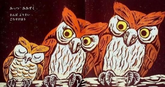 ひとつ ひまわり げんき いっぱい さいている ふたつ ふうりん かぜに すずしく うたってる みっつ みみずく さんば よりそい ごろすけほう 本文より。